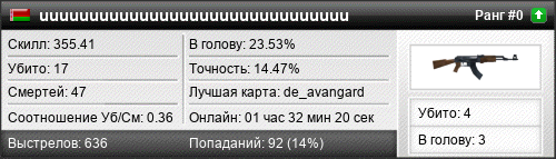 | de_avangard | 7 | 0.70 | 0.40 | 1 | 10 | 00:17:24 | 29.08.2018 | |
