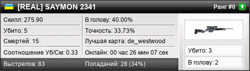 | de_westwood | 4 | 0.40 | 0.19 | 1 | 15 | 00:21:03 | 02.09.2018 | |