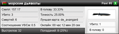 de_dust2 | 0 | 0.00 | 0.00 | 1 | 2 | 00:00:39 | 12.09.2018 |