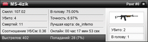 | de_inferno | 2 | 0.50 | 0.26 | 1 | 5 | 00:07:39 | 23.10.2015 | |
