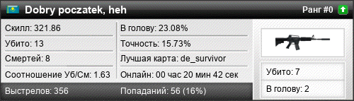 | de_survivor | 13 | 1.62 | 0.64 | 0 | 11 | 00:20:12 | 01.01.1970 | |