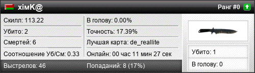 | de_reallite | 2 | 0.33 | 0.17 | 6 | 9 | 00:11:27 | 12.09.2018 | |