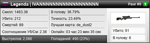 | de_dust2 | 42 | 3.50 | 1.24 | 2 | 22 | 00:33:58 | 26.09.2018 | |