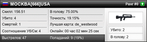 | de_westwood | 4 | 4.00 | 1.66 | 1 | 2 | 00:02:25 | 26.09.2018 | |