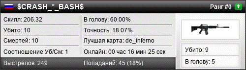 | de_inferno | 5 | 1.00 | 0.55 | 1 | 6 | 00:09:07 | 05.10.2018 | |