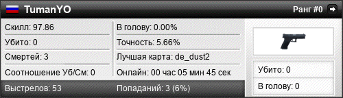 | de_dust2 | 0 | 0.00 | 0.00 | 1 | 2 | 00:03:02 | 26.10.2018 | |