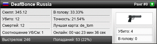 | de_torn | 11 | 1.00 | 0.58 | 1 | 13 | 00:19:06 | 22.10.2018 | |