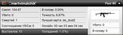 de_dust2 | 0 | 0.00 | 0.00 | 1 | 1 | 00:02:19 | 24.10.2018 |