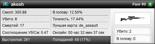 | de_assault | 4 | 0.67 | 0.36 | 1 | 10 | 00:11:08 | 13.05.2022 | |