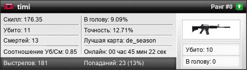 | de_aztecs | 3 | 3.00 | 0.59 | 1 | 4 | 00:05:07 | 23.10.2015 | |