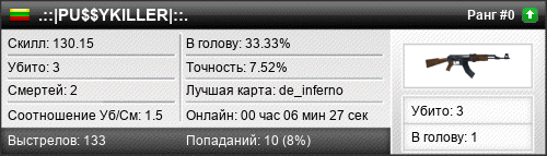 | de_inferno | 3 | 1.50 | 0.47 | 1 | 4 | 00:06:27 | 09.11.2018 | |