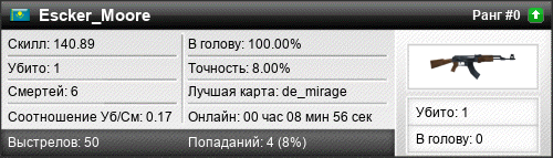 | de_mirage | 1 | 0.17 | 0.12 | 1 | 7 | 00:08:24 | 11.11.2018 | |