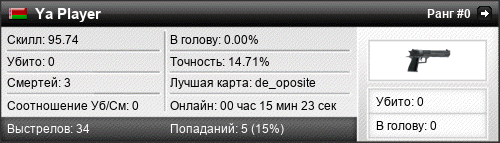 | 23.11.2018 @ 15:31 - 15:42 | de_oposite | 00:10:59 | 0 | 0 | 0 | 0.00% | 0.00% | 95.74 |