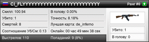 | de_mirage | 0 | 0.00 | 0.00 | 1 | 1 | 00:02:10 | 28.11.2018 | |