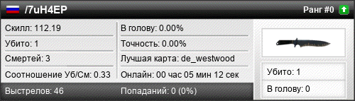 | de_mirage | 0 | 0.00 | 0.00 | 1 | 3 | 00:02:55 | 18.11.2018 | |