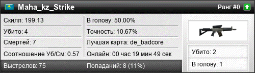 | de_badcore | 4 | 0.57 | 0.20 | 1 | 13 | 00:19:49 | 26.11.2018 | |