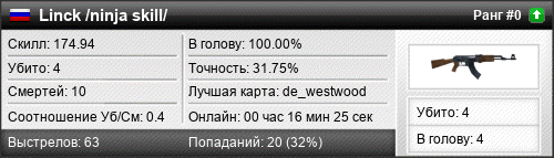 | de_westwood | 4 | 0.40 | 0.24 | 4 | 11 | 00:16:25 | 27.11.2018 | |