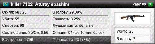 | de_aztec | 0 | 0.00 | 0.00 | 4 | 9 | 00:14:28 | 09.12.2018 | |