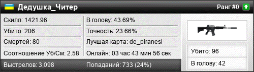 | de_dust2 | 26 | 2.17 | 0.82 | 1 | 20 | 00:31:43 | 18.12.2018 | |