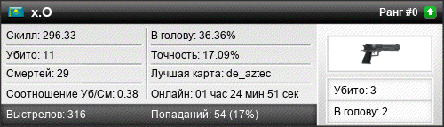 | de_ironwill | 0 | 0.00 | 0.00 | 1 | 3 | 00:04:23 | 06.11.2020 | |