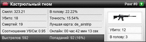 | de_airstrip | 13 | 1.18 | 0.48 | 1 | 20 | 00:27:13 | 31.12.2018 | |