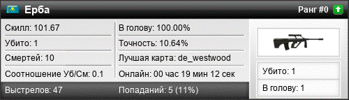 | de_westwood | 1 | 0.11 | 0.08 | 1 | 11 | 00:12:42 | 21.03.2020 | |