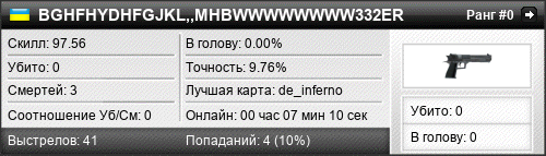 | de_inferno | 0 | 0.00 | 0.00 | 1 | 3 | 00:07:10 | 06.01.2019 | |