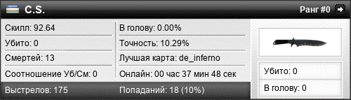 | de_ironblood | 0 | 0.00 | 0.00 | 1 | 1 | 00:01:22 | 03.04.2019 | |