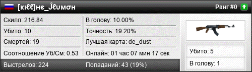 30.01.2019 @ 22:54 - 22:57 de_cache 00:02:44 1 1 0 0.00% 8.82% 208.22 Разница: +25.70