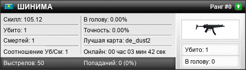 | de_dust2 | 1 | 1.00 | 0.34 | 1 | 3 | 00:02:58 | 31.01.2019 | |