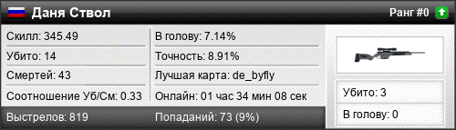 | de_byfly | 7 | 0.58 | 0.28 | 1 | 14 | 00:25:23 | 05.04.2019 | |