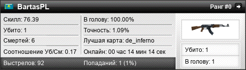 | de_inferno | 1 | 0.17 | 0.07 | 1 | 8 | 00:14:14 | 20.10.2015 | |