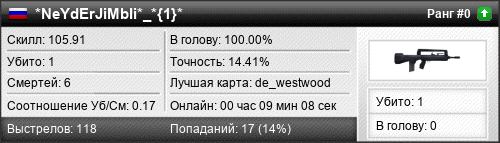 | de_westwood | 1 | 0.17 | 0.11 | 1 | 6 | 00:09:08 | 21.12.2015 | |