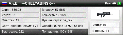 | de_rex | 22 | 2.00 | 0.99 | 1 | 17 | 00:22:20 | 25.02.2019 | |