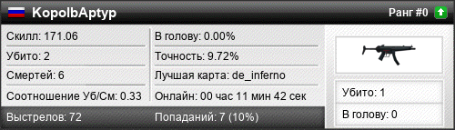 | de_inferno | 1 | 0.50 | 0.18 | 1 | 4 | 00:05:28 | 05.03.2019 | |