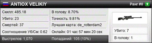 | de_rotterdam2 | 8 | 0.67 | 0.24 | 1 | 21 | 00:32:59 | 05.03.2019 | |
