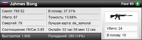 | de_samurai | 15 | 1.25 | 0.68 | 3 | 16 | 00:22:02 | 10.04.2019 | |
