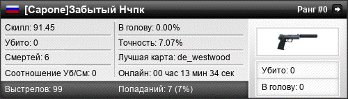 | de_westwood | 0 | 0.00 | 0.00 | 1 | 4 | 00:04:11 | 17.04.2019 | |