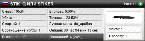 | de_apollon | 1 | 1.00 | 0.31 | 1 | 3 | 00:03:16 | 27.04.2019 | |