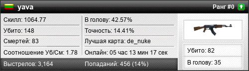 | de_plaka | 15 | 1.88 | 1.23 | 2 | 10 | 00:12:12 | 04.08.2019 | |