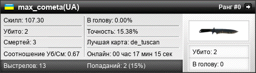24.10.2015 @ 14:37 - 14:43 de_tuscan 00:05:23 2 3 0 0.00% 15.38% 107.30 Разница: +7.30