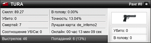 | de_inferno2 | 0 | 0.00 | 0.00 | 3 | 7 | 00:12:45 | 15.08.2019 | |