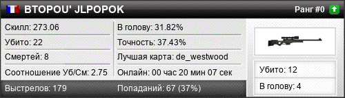 | de_westwood | 21 | 4.20 | 1.16 | 0 | 13 | 00:18:03 | 01.01.1970 | |