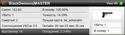 | de_adrenalin | 1 | 0.50 | 0.28 | 1 | 2 | 00:03:35 | 15.06.2019 | |