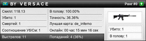 | de_inferno | 1 | 1.00 | 0.55 | 1 | 1 | 00:01:49 | 16.06.2019 | |
