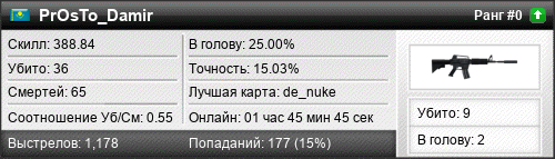 | de_dust | 3 | 0.38 | 0.19 | 1 | 9 | 00:16:07 | 16.06.2019 | |