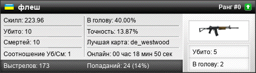 | 02.12.2020 @ 00:13 - 00:31 | de_westwood | 00:17:57 | 8 | 7 | 3 | 37.50% | 18.18% | 223.96 |