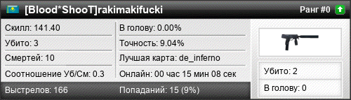 | de_inferno | 3 | 0.38 | 0.27 | 1 | 10 | 00:10:59 | 02.07.2019 | |