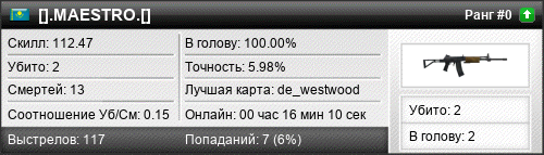 | de_westwood | 1 | 0.33 | 0.42 | 1 | 3 | 00:02:23 | 05.07.2019 | |