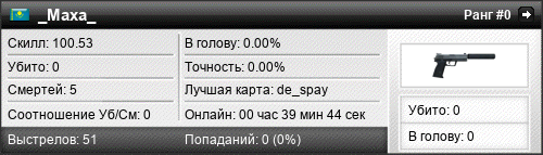| de_csgothic | 0 | 0.00 | 0.00 | 0 | 2 | 00:02:18 | 01.01.1970 | |